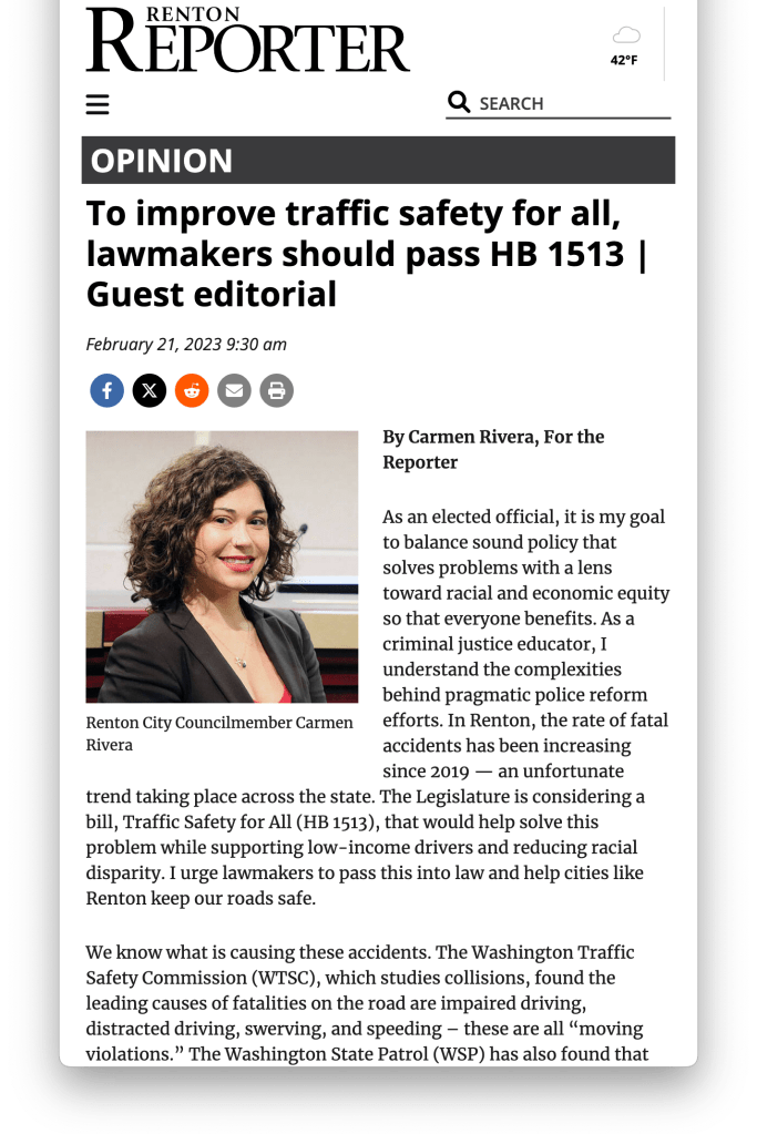 Member of the Renton City Council and Seattle University Assistant Teaching Professor, Carmen Rivera discusses the Renton Raise the Wage campaign, her journey to becoming a councilmember, and the racial equity lens that she carries throughout her work.